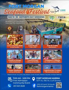 FORT MORGAN Ala. Baldwin County is known for its festivities, especially seafood festivals and the Fort Morgan Seafood Festival is returning during the weekend of May 9-10 at the Fort Morgan Marina.